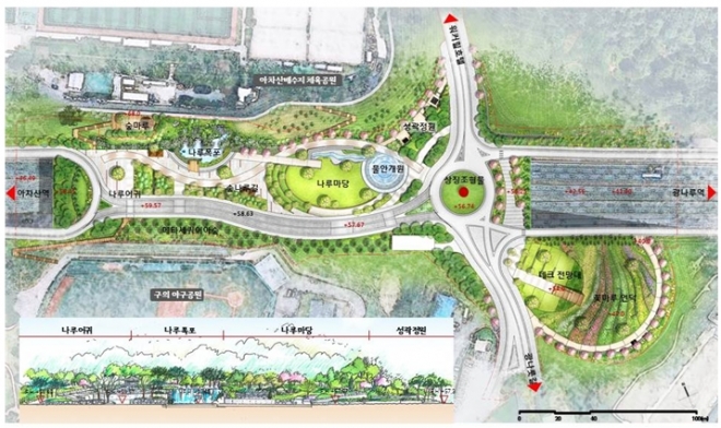 천호대로 확장공사 상부구간은 한강과 인접한 아차산 자락이 현 구의2동까지 이어져 있었으나, 천호대로 건설로 생태적 녹지축 단절이 초래된 것을 연결하는 상징적인 의미도 부여되어 있으며, 주민들이 편안하게 이용할 수 있도록 주민들의 요구를 최대한 반영했다.