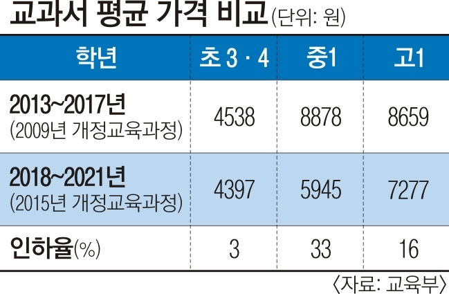 새학기 초ㆍ중ㆍ고교 최대 33% 인하…출판사 “교육부 일방 강요” 반발