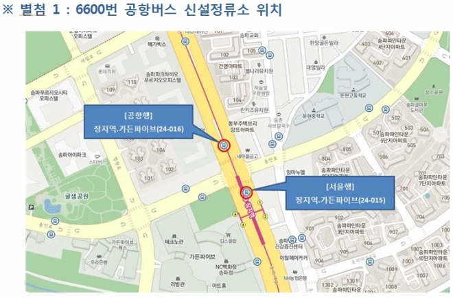 문정지구일대 주민들의 인천공항행 공항버스이용 여건이 크게 개선될 것으로 기대된다. 장지역 버스정류소에 공항버스 정류소가 신설되었기 때문이다.