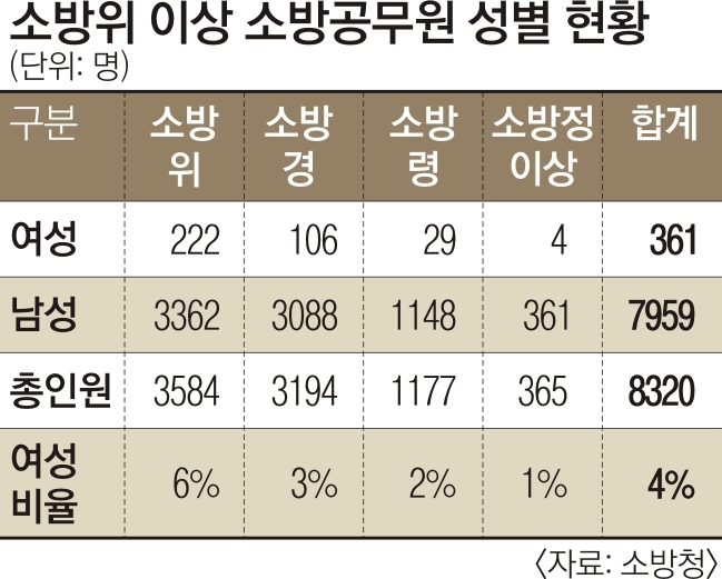 [오늘 ‘세계 여성의 날’ 2제] 소방경 이상 여성간부 비율 2.9% 불과
