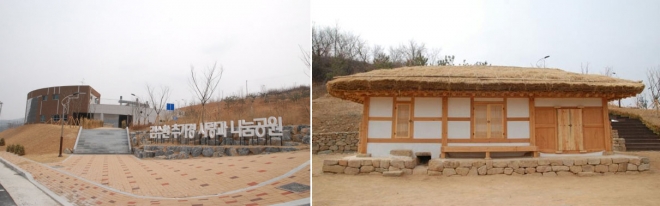 경북 군위에 조성된 ‘김수환 추기경 사랑과 나눔공원’(왼쪽·이하 김수환 공원) 개장을 앞두고 진짜 추기경 생가가 어디인지를 놓고 논란이 재현되고 있다.