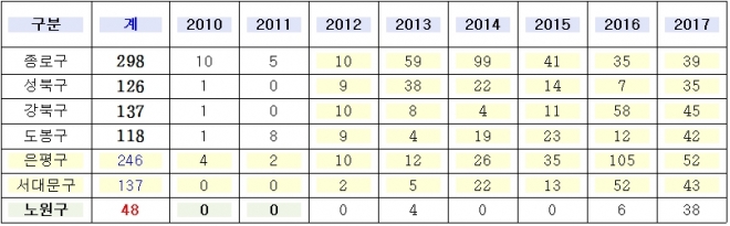 토론회에서는 정확한 숫자를 파악하지 못한 개체수가 문제가 됐다. 자료에서 더욱 흥미로운 것은 2017년에 노원구에 출현횟수가 대폭적으로 늘어난 것이다. 노원구에는 수락산과 불암산에 주로 나타났으며 2~3마리가 집단으로 이동을 하는 경우도 많았다. 이 중 15마리를 포획했다.