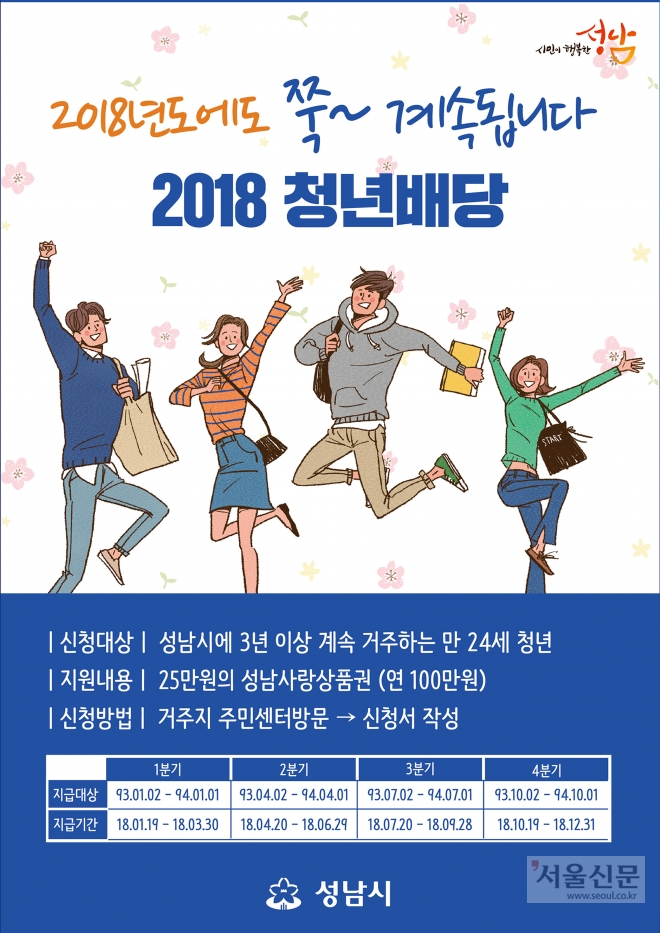 3년 이상 성남시에 거주한 만 24세 청년 1만773명이 지급 대상이다. 1993년 4월2일부터 1994년 4월1일 사이에 태어난 이들이 해당한다.