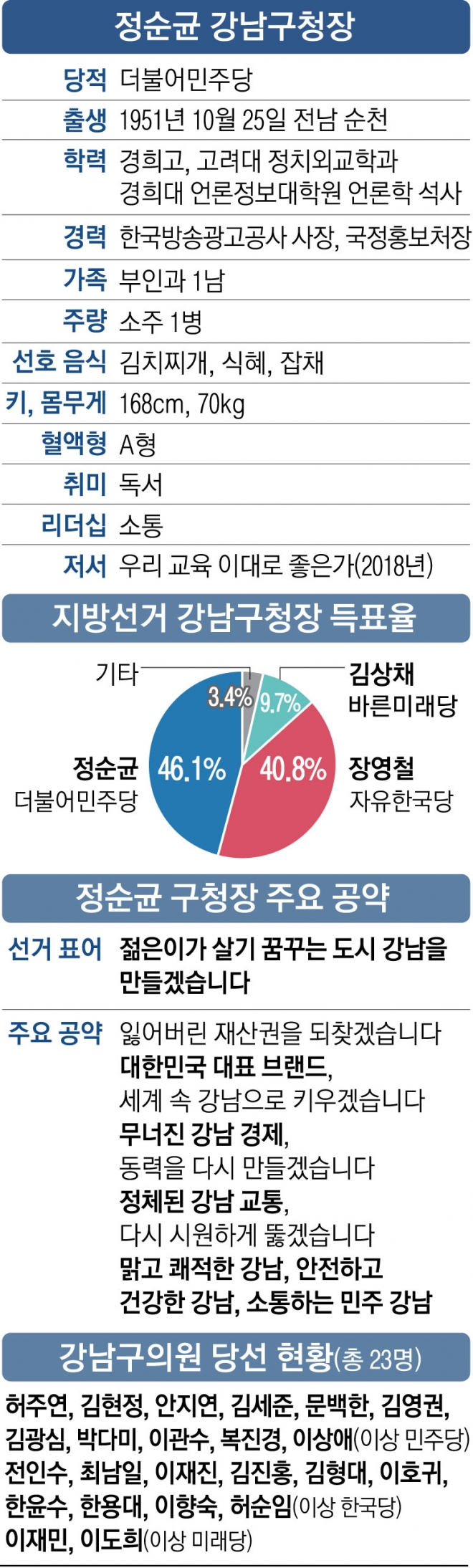 정순균 강남구청장은 약자의 아픔을 보듬을 줄 아는 따뜻한 정치인으로 평가받는다.