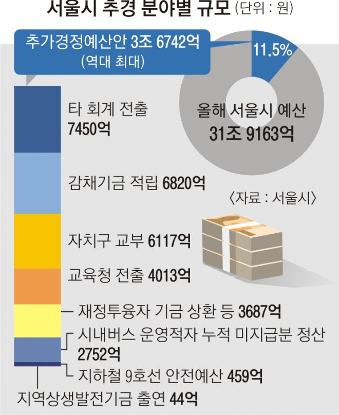 시는 16일 시민 삶의 문제를 집중적으로 해결하겠다며 이 같은 추경예산안을 발표했다. 이번 추경규모는 올 한 해 서울시 예산 31조 9163억원의 11.5%에 달한다.