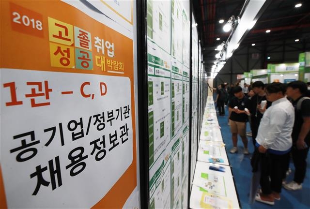 1년 전 대비 취업자 수 증가가 7월 5000명에 이어 8월 3000명에 그치는 등 ‘고용 참사’가 현실화되면서 공공기관이 일자리 문제에 ‘구원투수’로 등판하고 있다. 2일 기획재정부 등에 따르면 정부는 지난해 12월 발표한 ‘2018년 경제정책방향’에서 올해 공공기관 채용 인원을 2만 3000명으로 잡았다. 하지만 취업자 수 증가가 1월 33만 4000명에서 2월 10만 4000명으로 뚝 떨어지자, 지난 3월 청년 일자리 대책을 발표하며 공공기관 채용 인원을 5000명 늘어난 2만 8000명으로 다시 책정했다. 불과 3개월 만에 채용 인원을 21.7% 늘린 것이다.