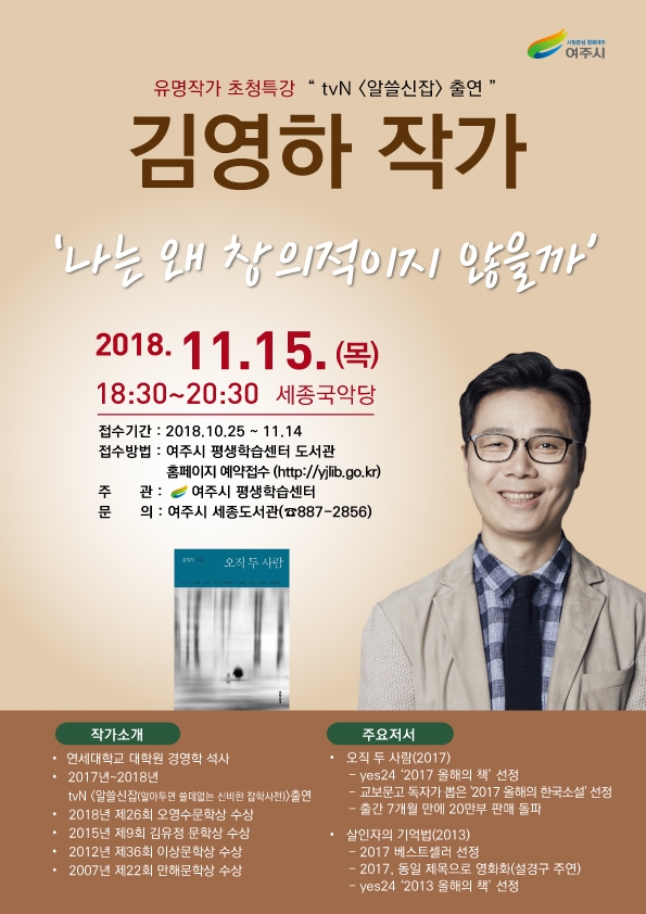 여주시 평생학습원 ‘오직 두 사람’ 김영하 작가 초청 특강