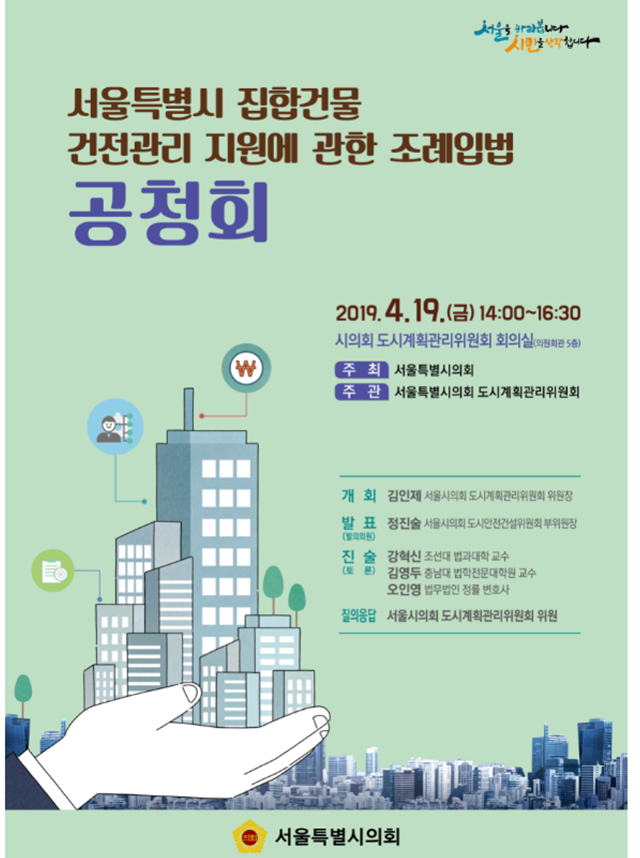서울시의회 도시계획관리위원회, 「서울특별시 집합건물 건전관리 지원에 관한 조례」제정을 위한 공청회 개최