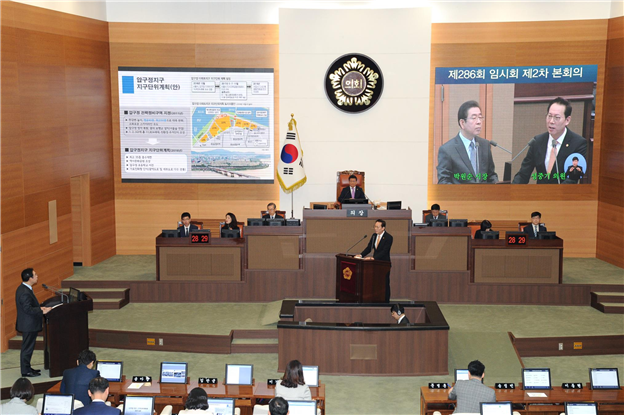 이 날 시정질문에서는 포화상태인 지상주차장과 주민들이 직접 촬영한 열악한 주거환경 사진도 함께 공개됐다. 주차된 차량들로 기능을 상실한 놀이터와 주차된 차량 사이로 아슬아슬하게 비껴가는 자동차의 모습, 녹물이 쏟아져 나오는 수도꼭지, 붉게 부식·산화된 노후된 배관, 옥상 방수 공사 모습 등이 담긴 사진은 주민들의 불편하고 위험한 주거환경을 여실히 보여줬다.