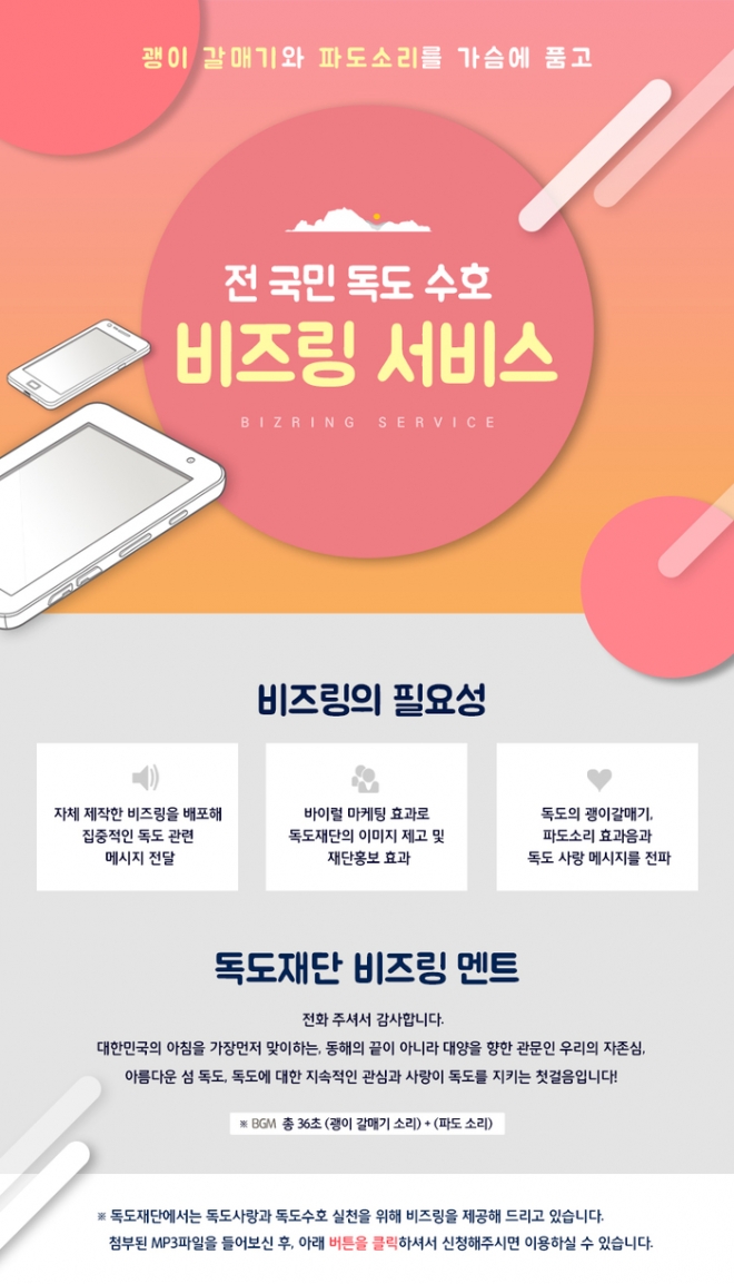 독도재단, 휴대전화 통화 연결음 서비스 무료 제공