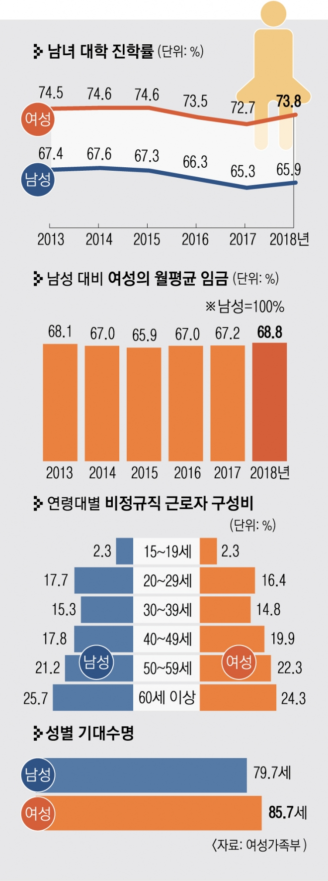 한국 여성 평균 초혼 30.4세… 임금 근로자 중 비정규직이 41.5%