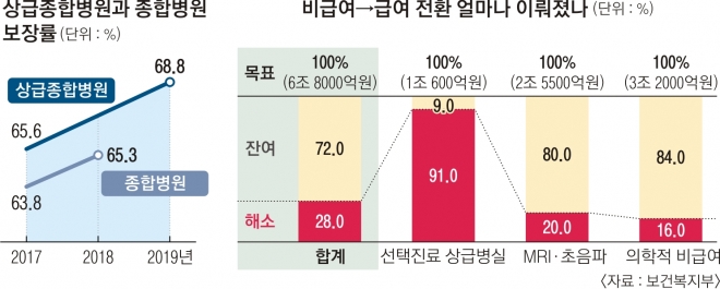 정부는 2017년 8월 성형·미용을 제외한 비급여 진료 항목에 건강보험을 적용하고 취약계층 의료비를 대폭 낮추는 내용의 보장성 강화 계획을 발표했다. 이후 환자가 전액 부담하던 비급여 진료·검사비에 건강보험을 적용해 가계 진료비 1조 4000억원을 줄였다. 또 노인과 아동 등 의료취약계층의 본인부담률을 내려 의료비 8000억원을 절감했다.