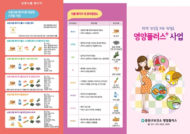 지원 희망자는 연중 거주지 보건소 영양플러스실(수정·031-729-3881, 중원·031-729-3920, 분당·031-729-4006)로 전화 신청하면 된다.
