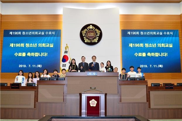 이날 청소년 의회교실에는 강동송파교육지원청 관내 초등학교 학생 약 95명이 참여하여 2분 자유발언과 모의의회를 통해 직접 조례안을 처리하는 등 일일 ‘어린이시의원’으로서 서울시의회 의정활동을 경험했다. 모의의회 이후 학부모 50여명이 함께한 가운데 수료식과 기념촬영이 진행됐다. 노 부위원장은 잠동, 잠실, 잠현, 토성, 풍납, 풍성, 고명, 방산, 방이, 세륜초등학교 학생들에게 청소년 의회교실 수료증 수여하고 격려의 메시지를 전했다.