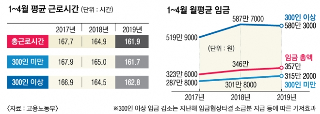 고용부는 “올 상반기 취업자 수는 2685만 8000명으로 전년 동기보다 20만 7000명 증가했다”면서 “지난해 고용 부진에서 벗어나 완만한 개선 조짐을 보이고 있다”고 강조했다. 이어 “최저임금 인상 효과 등으로 소규모 사업장 임금이 상대적으로 높게 상승했다”면서 “사업체 규모에 따른 임금격차가 완화된 것으로 보인다”고 설명했다. 300인 이상 사업장에서는 초과근로시간이 대폭 감소했다는 것과 올 상반기 고용보험 가입자수가 1353만 4000명으로 전년 동기보다 51만 7000명이나 증가했다는 내용도 덧붙였다.