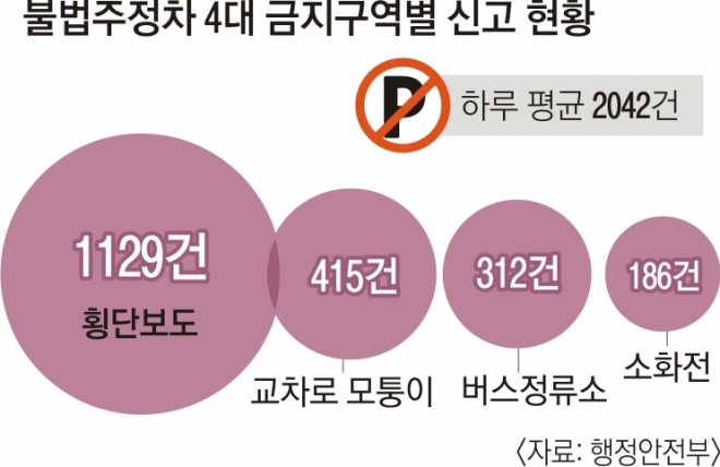 ‘횡단보도 주차 신고’가 11만건 넘어 최다