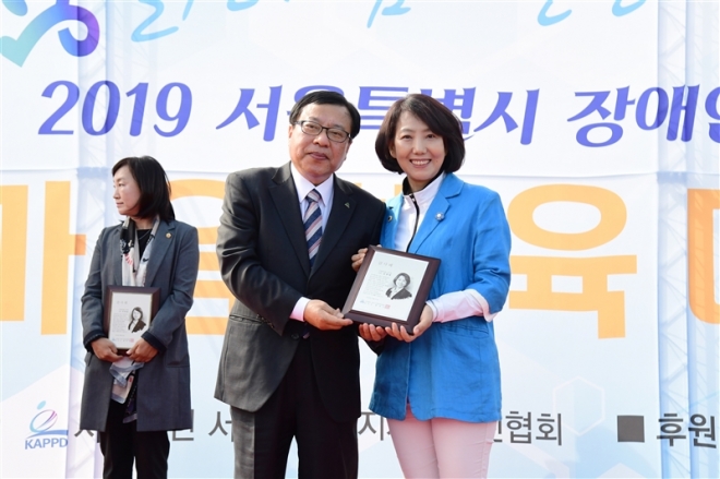 김 의원 “장애인의 사회 참여와 삶의 질 향상을 위해 노력하고 있는 서울시지체장애인협회로부터 큰 상을 받게 되어 영광스럽고 동시에 무거운 책임감을 느낀다”며 “앞으로도 서울시의원으로서 장애인들의 실질적인 경제적 자립을 갖출 수 있는 정책을 만들고 실천하겠다”고 밝혔다.