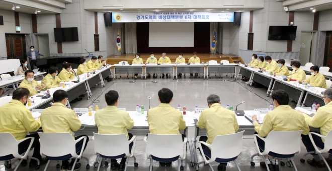 경기도의회 신종 코로나바이러스 감염증(코로나19) 대책기구인 비상대책본부는 12일 오전 의회 1층 대회의실에서 6차 대책회의를 열고, 코로나19 장기화에 따른 대응 방안과 각종 재난지원금 활용 방안에 대해 논의했다.