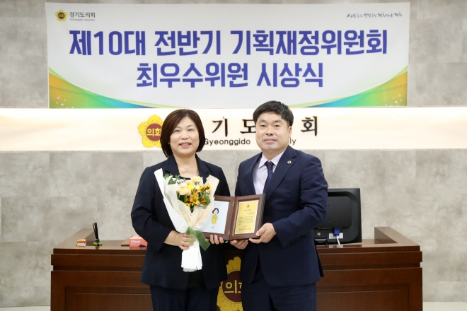 정대운 위원장은 “기획재정위원회 위원으로서 노동의 숭고한 가치를 널리 알리고 소득격차 해소에 앞장서 민생중심의 경기도를 만들기 위하여 헌신해주신 데 감사드린다”라며 이 의원에게 최우수위원 상패를 전달하였다.