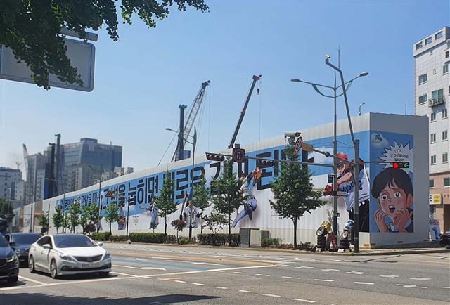 은평에 ‘공포의 외인구단’ 떴다…공사 가림벽 청년 응원 메시지