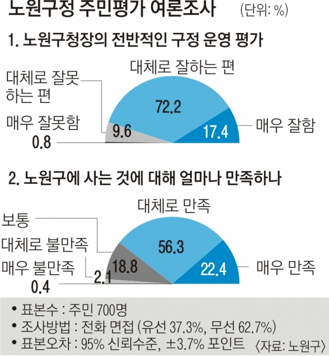 “지난 2년 동안 정말 앞만 보고 달려왔다. 경로당, 유치원, 학교, 지역 내 단체 등 다양한 주민들을 만나면서 노원구의 구석구석을 샅샅이 훑고 다녔다. 그리고 초선으로서 배운다는 마음가짐으로 전국 방방곡곡과 해외도 가리지 않고 달려갔다. 그 결과 주민들이 노원구가 많이 변했다는 말씀을 해 주신다. 주민 700명을 대상으로 설문조사를 했는데 10명 중 9명이 구정 운영에 대해 긍정적으로 평가했다. 10명 중 8명은 노원구에 거주하는 게 만족스럽다고 답했다.”