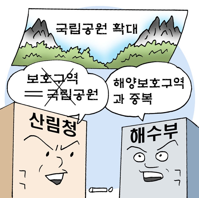 산림청 관계자는 “타당성이 미흡한 지역은 해제가 필요하지만 법적 근거 없는 총량제를 내세워 논란을 반복하고 있다”며 “훼손 우려가 없는 국유림 위주의 공원 확대는 모순된 정책”이라고 주장했다. 해양수산부 역시 “해양의 체계적 관리를 위해 해양보호구역을 확대하고 있는데, 국립공원 해상 면적 확대는 이와 중복될 우려가 있어 효율성과 주민 수용성 등을 신중하게 검토할 필요가 있다”고 지적했다.