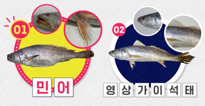 ‘국민 물고기’ 민어와 동부 대서양 열대해역에서 주로 잡히는 ‘영상가이석태’는 머리와 지느러미 모양으로 구분할 수 있다. 민어는 입이 붉고 배지느러미와 뒷지느러미가 노란빛을 띤다. 반면 영상가이석태는 머리가 작고 등지느러미가 둘로 나뉘어 있으며 가슴·배·뒷지느러미에 검붉은 반점이 있다.