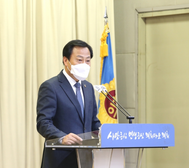 이어 “이달은 내년 예산안도 준비해야 하는 중요한 시기로 내년도는 코로나19 사태를 극복하고, 사회와 경제 구조 대전환을 준비해야하는 때”라며 “내년도 예산안 심의와 수립이 원활히 이뤄질 수 있도록 의회 가족 여러분의 많은 협조 부탁드린다”고 했다.
