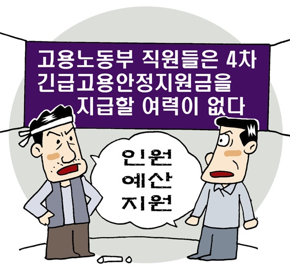 지 위원장은 “해가 바뀌어 실업급여 등 처리해야 할 업무가 늘어난 상황에서 제대로 된 인력 지원이 없다면 긴급고용안정지원금 업무 처리가 쉽지 않다”며 “기재부는 일단 우리 요구대로 지원을 해 주겠다고 약속했다”고 말했습니다. 하지만 이런 사정을 감안해도 현수막을 본 국민들의 시선은 곱지만은 않은데요. 고용부 직원들이 국민에게 한 걸음 더 다가가는 ‘서비스’로 극복해야 할 것 같습니다.