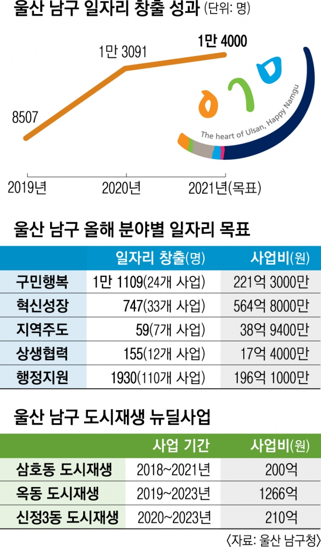 “일자리종합센터와 청년 일자리카페 등 일자리 관련 인프라를 적극적으로 활용해 올해 1만 4000여개의 직간접 일자리를 만들 계획이다. 분야별로 540개의 사업을 추진한다. 특히 ‘청년 지역상생 고용지원’은 남구지역 자영업자가 실직한 청년을 고용하면 월 50만원씩 6개월간 최고 300만원의 인건비를 지원하는 사업이다. 청년 100명에게 일자리를 제공하기 위해 5월 말 100개의 사업장을 모집했다. 또 지역 최초로 ‘코로나19 위기극복 청년창업 점포 지원사업’을 오는 8월부터 내년까지 추진한다. 청년 예비 창업가 육성도 지속적으로 한다. 성장 가능성 큰 중소기업을 지원하는 ‘한 단계 스케일업 기업지원’ 사업 등을 통해 신생·중소기업의 경쟁력도 높일 예정이다. 기업의 경쟁력이 높아지면 자연히 일자리도 늘어날 것이다. 코로나19발 고용쇼크로 울산 지역 고용률이 11년 만에 최저 수준으로 떨어졌다. 경기침체 탓에 모두가 힘든 만큼 촘촘하고 내실 있는 일자리 지원대책을 추진해 고용 안전망의 사각지대를 해결하겠다.”