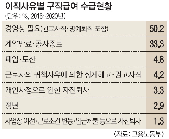 정보기술(IT) 회사에서 일했던 B씨 역시 “코로나19로 업무가 없어지자 대표가 두 달치 월급을 더 받고 퇴사할 것을 권고했다”면서 “이에 구직급여를 수령할 수 있도록 권고사직으로 처리해 달라고 했으나 회사는 정부지원금을 받는 상황이라 안 된다고 했다”고 말했다. 권고사직이나 경영상의 해고로 고용이 줄면 정부 지원이 축소되거나 중단되니 정부지원금을 계속 받으려고 노동자의 퇴사 사유를 ‘자발적 퇴사’로 처리해 버린 것이다.