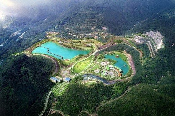 무릉지구 관광단지는 쌍용양회가 지난 2017년 말까지 50년 동안 석회석 채광을 마친 삼화동 일대 107만㎡의 노천 폐광지를 개발하는 사업이다. 우선 다음달 문을 여는 1단계는 건강·복합체험 관광단지로 조성됐다. 명칭도 시민 선호도 조사를 끝내고 최근 ‘무릉별유천지’로 정했다. 2027년까지 추진하는 2단계 사업은 민간투자자와 협의해 종합 관광단지로 만들어진다.