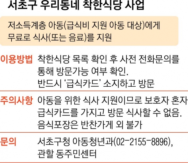 서울 서초구 결식 아동들에게 밥 한끼를 무료로 제공하는 ‘우리동네 착한식당’ 사업에 따뜻한 손길이 이어지고 있다.