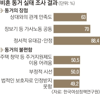 ‘만족한다’ 동거커플 63% - 부부 57%동거 70% 가사 균등… 가정생활 평등
