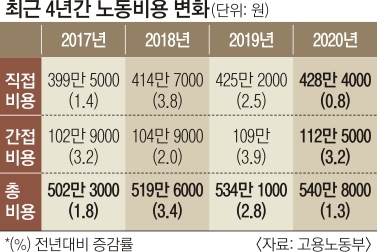 근로자 1인당 노동비용 540만원… 1.3%↑