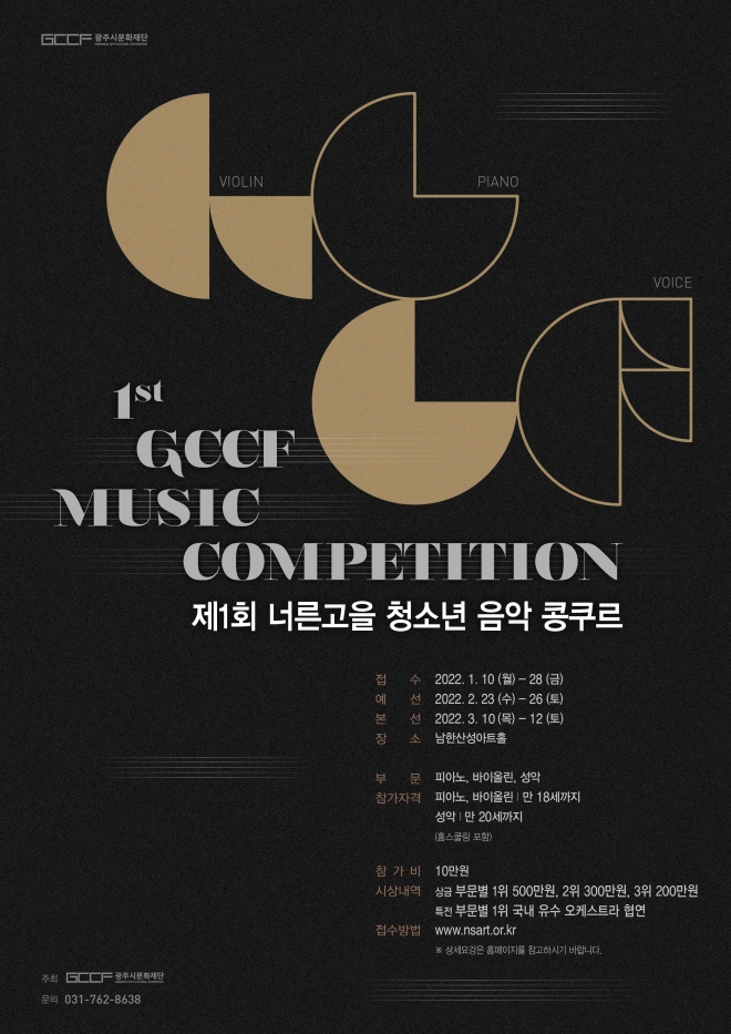 전국의 우수한 재능을 지닌 음악 영재를 발굴하고 국내 문화예술 인프라를 확장하기 위해 마련한 이번 콩쿠르는 성악과 피아노, 바이올린 총 3개 부문으로 개최되며 성악의 경우 만 20세 이하, 피아노와 바이올린의 경우 만 18세 이하의 청소년이라면 누구라도 참여 가능하다.