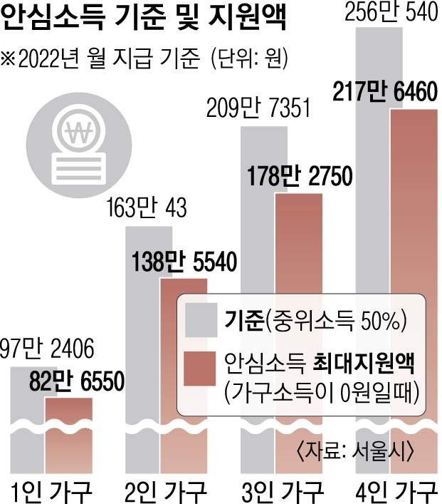 서울시는 “국가기초생활보장제도는 재산을 소득으로 환산하다 보니 실제 월수입이 없어도 탈락하는 경우가 적지 않지만 안심소득은 소득과 재산을 별도로 보기에 소액의 재산이 있는 저소득자들도 혜택을 볼 수 있다”고 설명했다.
