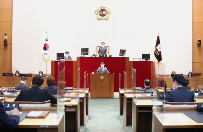 윤창근 의장은 개회사를 통해 “이번 회기를 끝으로 제8대 후반기 의회는 공식 의사일정을 마무리하게 된다. 2020년 7월 후반기 원 구성 후 지난 1년 10개월 동안 SNS를 통한 시민과의 소통과 공감을 위한 프로그램 운영과 미디어 소통방 구축, 기후 위기 극복과 포스트 코로나 특위 운영, 시민과 함께하는 개원 30주년 행사와 프로그램 진행, 32년 만의 지방자치법 전부개정에 의한 인사권 독립, 정책지원 전문인력 채용 절차 진행 등 풀뿌리 민주주의의 도약과 자치분권 2.0 시대의 토대를 마련할 크고 작은 성과를 이루어냈다”라고 말했다.