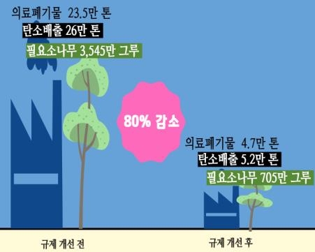 안양시는 규제개선의 효과로 ▲병원 내 의료폐기물 자체 처리로 2차 감염 위험 최소화 ▲의료폐기물 처리비용 연간 2225억원 절감 ▲ 의료폐기물 소각에 따른 이산화탄소 배출량 80% 감소 ▲의료폐기물 소각장 증설에 따른 사회갈등 해결 ▲글로벌 의료폐기물시장 진입 토대 마련 등을 기대하고 있다.