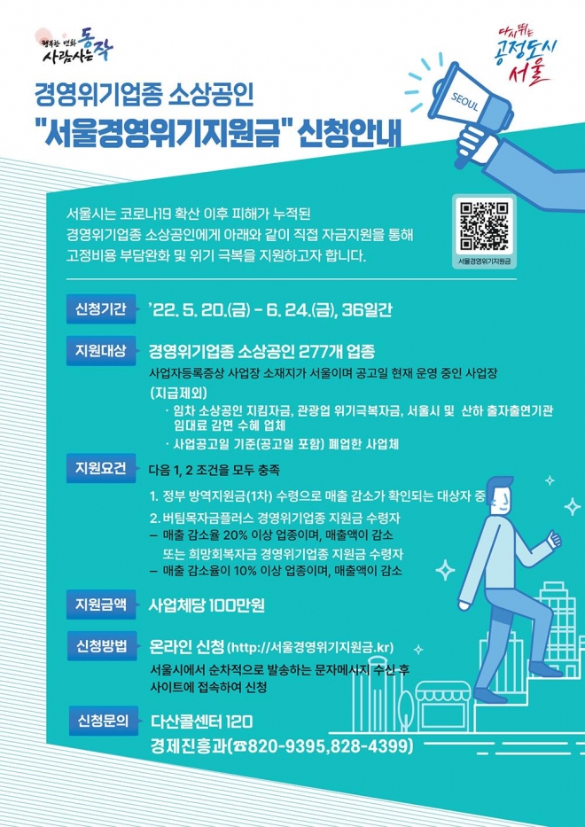 ‘서울경영위기지원금’은 집합금지·영업제한 등 방역조치 대상 업종이 아닌 까닭에 정부 손실보상을 받지 못하거나, 매출이 감소하더라도 연매출 2억원 이상이라 서울시 지킴자금 지급 대상에서도 소외된 경영위기업종 소상공인을 지원하고자 마련됐다. 경영위기업종은 지난 2020년 국세청 신고매출이 2019년 대비 10% 이상 감소한 277개 업종이다.