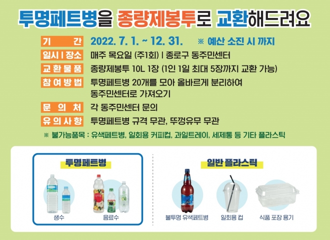 종로구 “투명 페트병→종량제 봉투로 교환해 드려요”