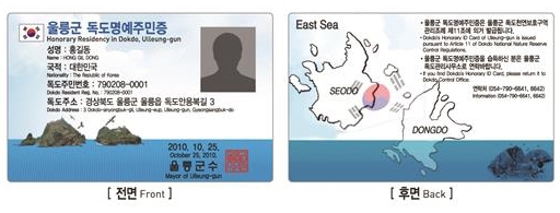 독도 영유권을 강화하는 홍보의 하나로 도입된 독도 명예주민증 외관은 일반 주민등록증과 비슷하다. 가로 8.5㎝, 세로 5.4㎝ 크기이고, 울릉군수 직인이 찍혀 있다. ‘울릉도 독도천연보호구역 관리 조례 제11조에 의거 발급됩니다’란 문구와 태극기, 독도 사진도 들어 있다. 독도 여객선 승선권 등을 독도관리사무소에 증빙하고 인터넷을 이용해 발급을 신청하면 우편으로 보내 주며, 비용은 무료다. 소지자에게는 울릉도 관광시설 이용 할인 등의 혜택을 준다.