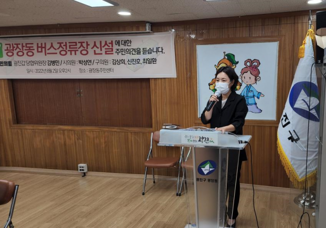 이날 의견 청취는 2227번 버스노선 연장에 따른 정류소 신설 추진경과를 공유하고 주민의견을 수렴하고자 마련됐으며, 박 의원을 비롯, 김병민 국민의힘 광진갑 당협위원장, 김상희, 신진호, 최일환 광진구의원(이상 국민의힘)과 지역주민 30여 명이 참석한 가운데 개최됐다.