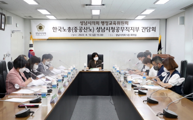이날 간담회는 성남시청공무직지부 조합원과 도서관 인력 문제 및 상호대차 업무의 특수성을 함께 공유하며 개선 방향에 대해 고민하는 자리였다.