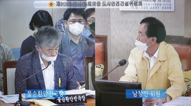 남창진 부의장은 질의에서 2011년 10월 14일 광화문광장 침수 방지를 위해 입찰공고된 ‘효자배수분구 빗물터널 설치공사’가 4번의 연기 끝에 2012년 6월 취소됐다고 하면서, 취소 이유는 일부 단체에서 대규모 토목공사를 부정적으로 보고 소규모 빗물 분산처리시설로 변경해 진행하려는 것이었다고 설명했다.