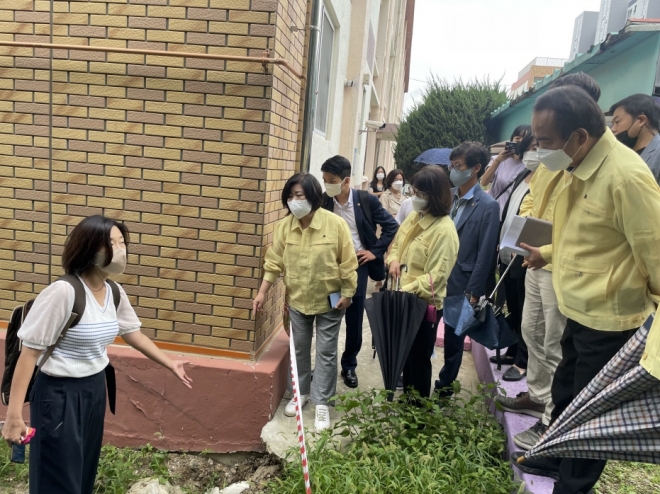 성남시의회 행정교육위원회, 옹벽 붕괴 우려 성남제일초교 현장 방문