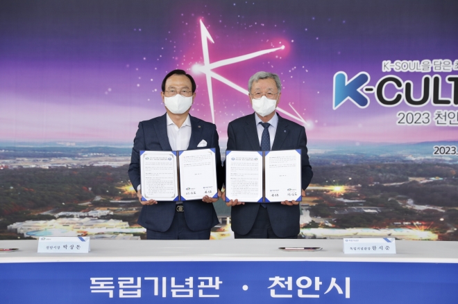 박상돈 시장은 “이번 협약 체결을 기회로 천안시와 독립기념관 모두가 대한민국 K-컬처의 중심으로 도약하는 새로운 전환점이 될 것”이라고 강조했다.