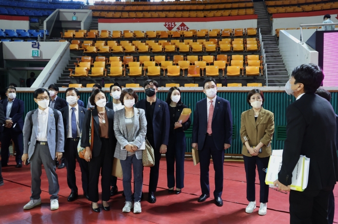 이후 진행된 질의응답을 마친 후 위원들은 수영장과 실내체육관을 둘러보면서 시설 안전 관리 사항을 면밀히 점검하고 현장 여건 개선과 관련한 실무진의 의견을 청취했다.