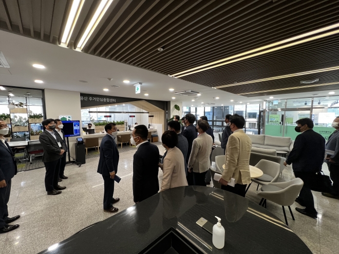 주택공간위원회 위원들은 먼저 용산주거안심종합센터장으로부터 센터운영 현황에 대한 보고를 받고 질의응답하는 시간을 가졌으며, 이어 남정현 서울시 전략주택공급과장으로부터 역세권 청년주택 추진현황 및 성과에 대해 보고를 받은 뒤, 청년주택 내 각종 커뮤니티 시설 및 공익시설 그리고 실제 청년주택 거주공간(호실)을 견학하는 시간을 가졌다.