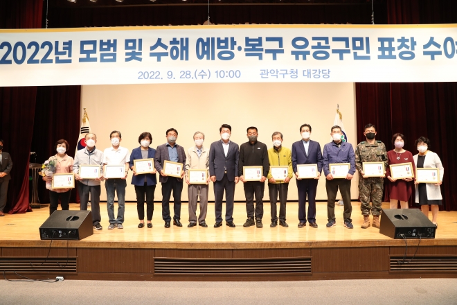 관악구, 8월 집중호우 시 인명 구조·수해 복구 유공자 표창